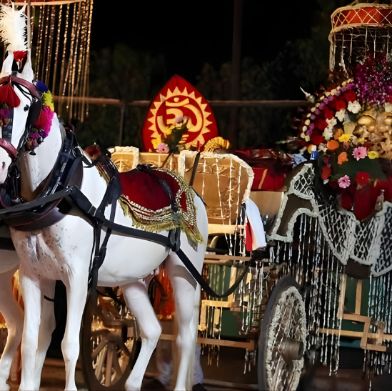 Add confetti cannons, mashal carriers, vintage ghodi/buggy entries, synchronized lighting, and showpieces to make every moment cinematic and unforgettable.
